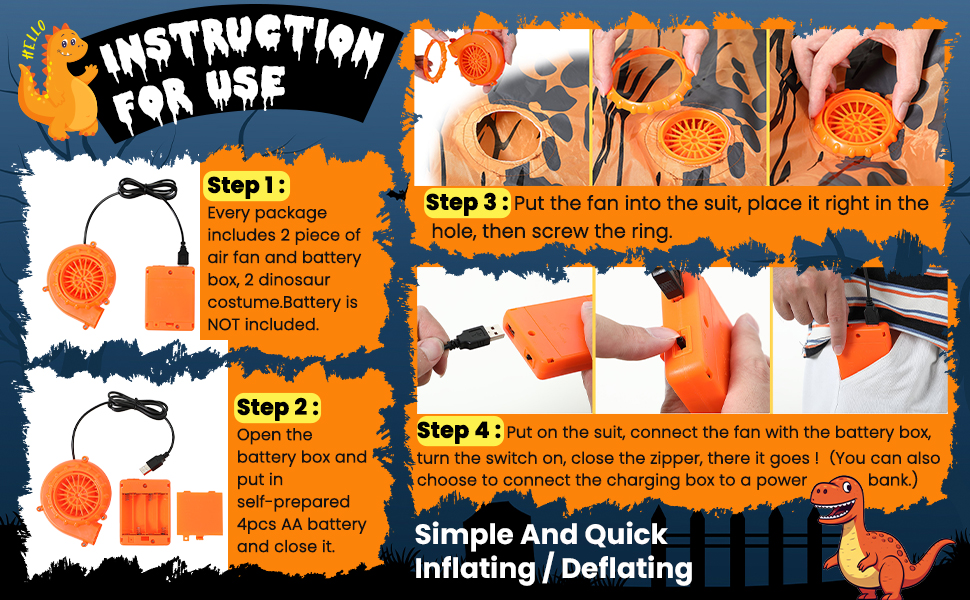 Reminder: Please handle Dino and all the costume parts with care - when wearing and packing/unpacking